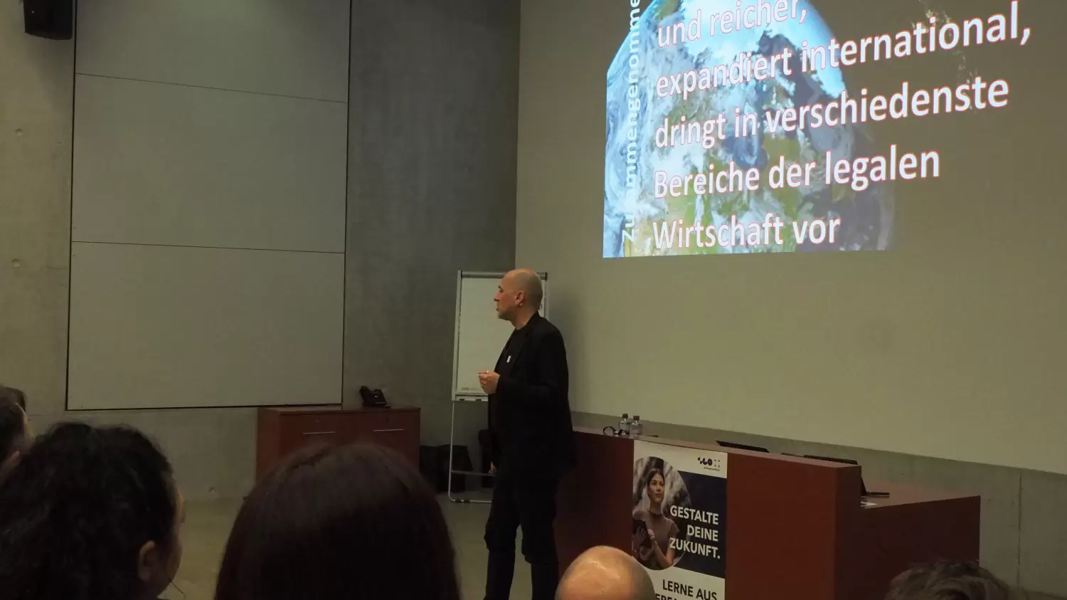 Sandro Mattioli brachte aus journalistischer und investigativer Perspektive, die Funktionsweise organisierter krimineller Netzwerke ein. Anhand von Beispielen zeigte er, wie es der Mafia gelingt, Kontakte in Finanzsysteme aufzubauen, Bankfunktionäre für sich zu gewinnen und komplexe Finanzoperationen abzuwickeln.